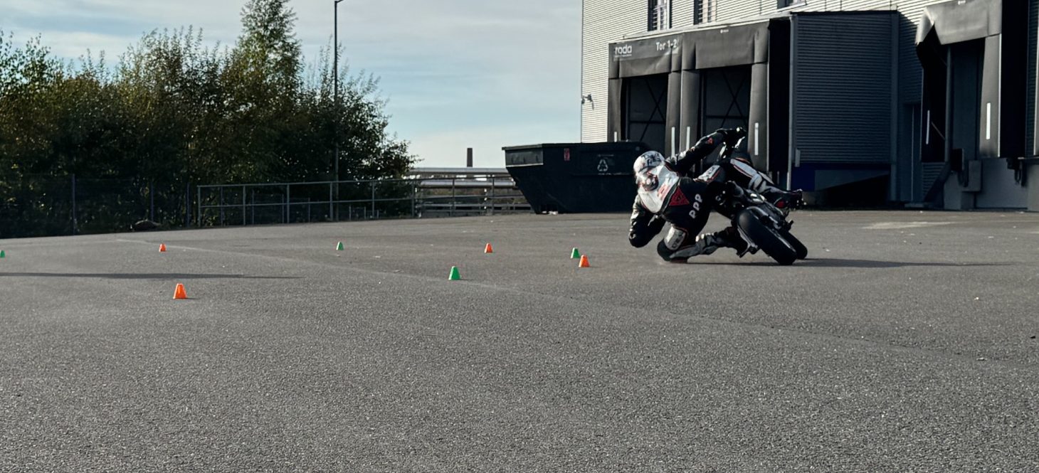 Ein abgesperrtes Gelände, kleine Bikes und Kreise erfordern keine hohen Geschwindigkeiten um den Kniff mit dem Hang-Off zu erleben.